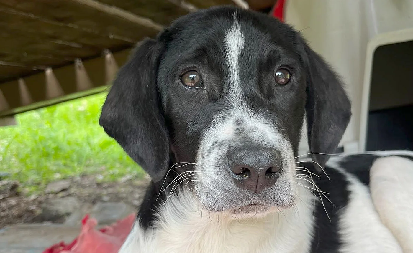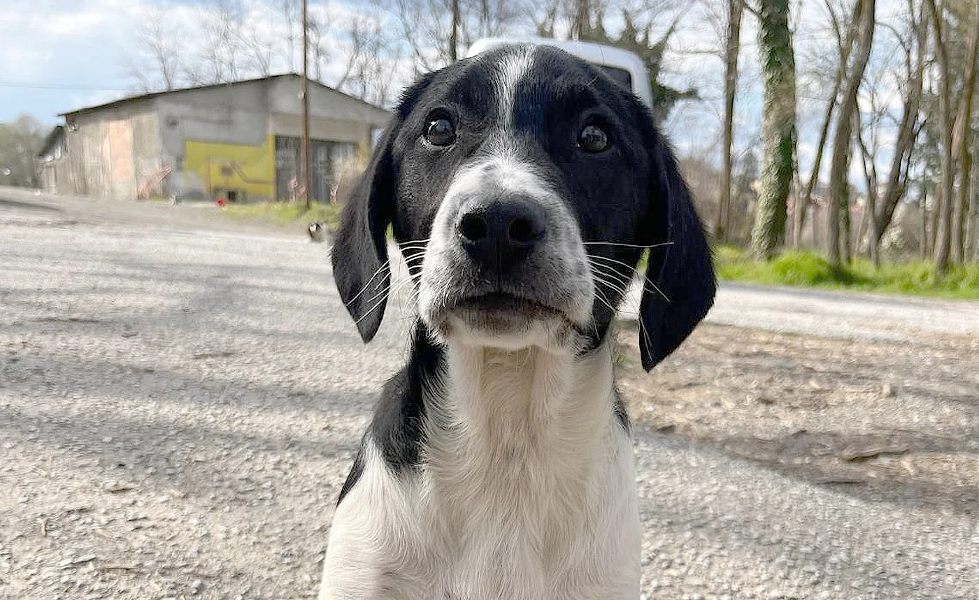 Porthos ist ein etwa vier Monate alter Welpe, der gemeinsam mit seinen beiden Brüdern Athos und Aramis – unsere „drei Musketiere“ – Ende Februar auf der Straße gefunden wurde. Allein und ohne Schutz wurden die drei im Park entdeckt und von uns gesichert.