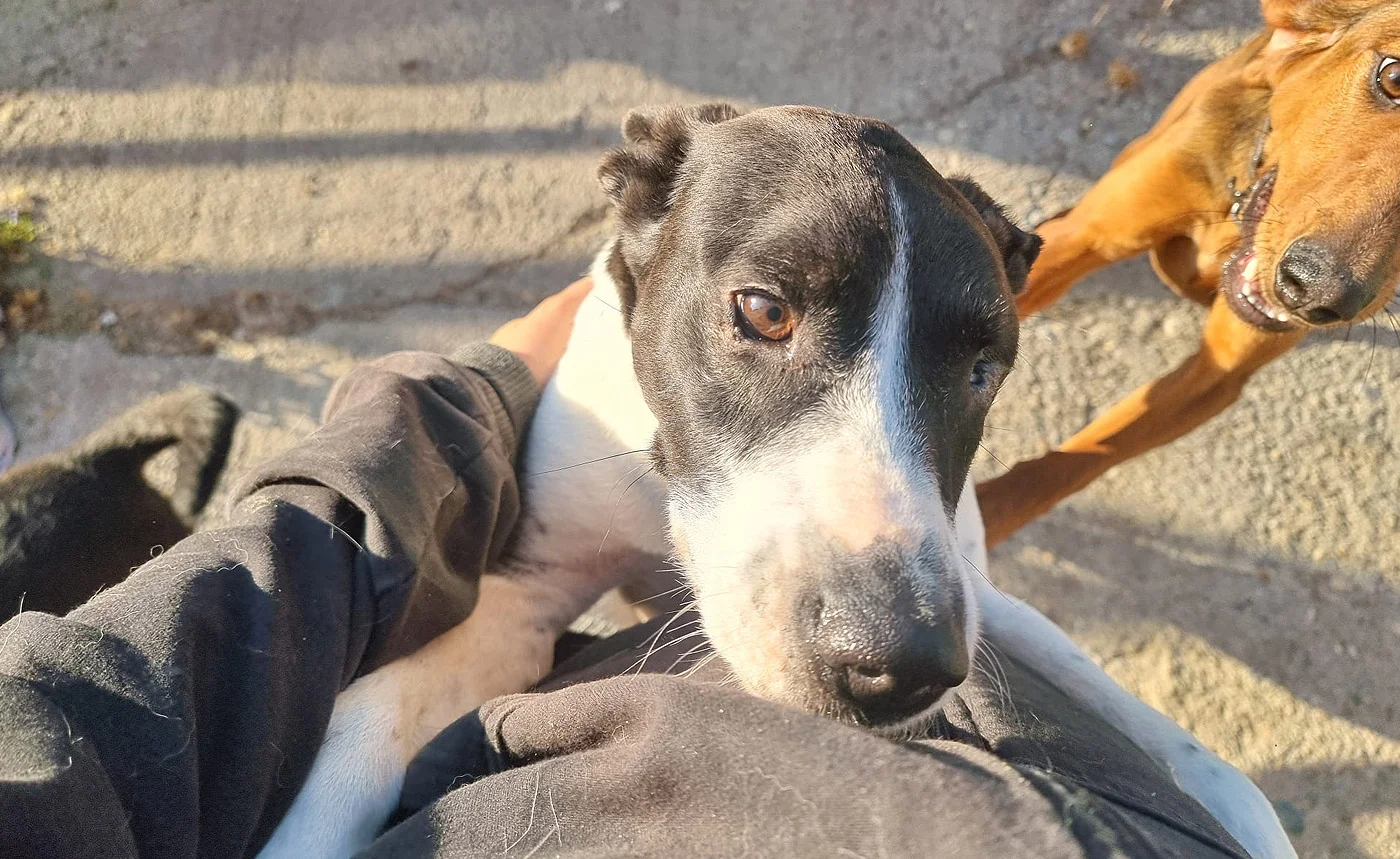 Jack lebt aktuell mit Lisa in einer Hundegruppe – Lisa ist seine große Hundefreundin, mit der Jack oft eng aneinander gekuschelt im Körbchen liegt. Dank seiner sozialen und aufgeschlossenen Art findet Jack schnell Anschluss. Hunde, die ihm zu aufdringlich sind, kann er einfach ignorieren – souverän und entspannt.